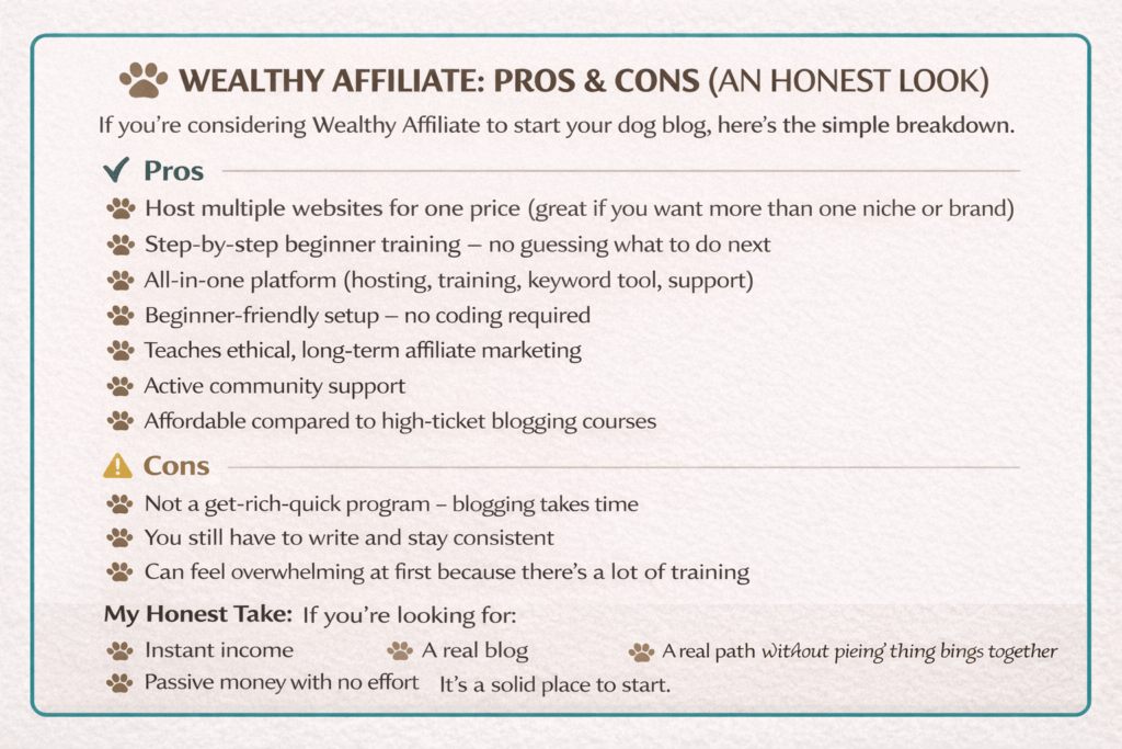 That’s why I recommend Wealthy Affiliate for dog moms who want:
